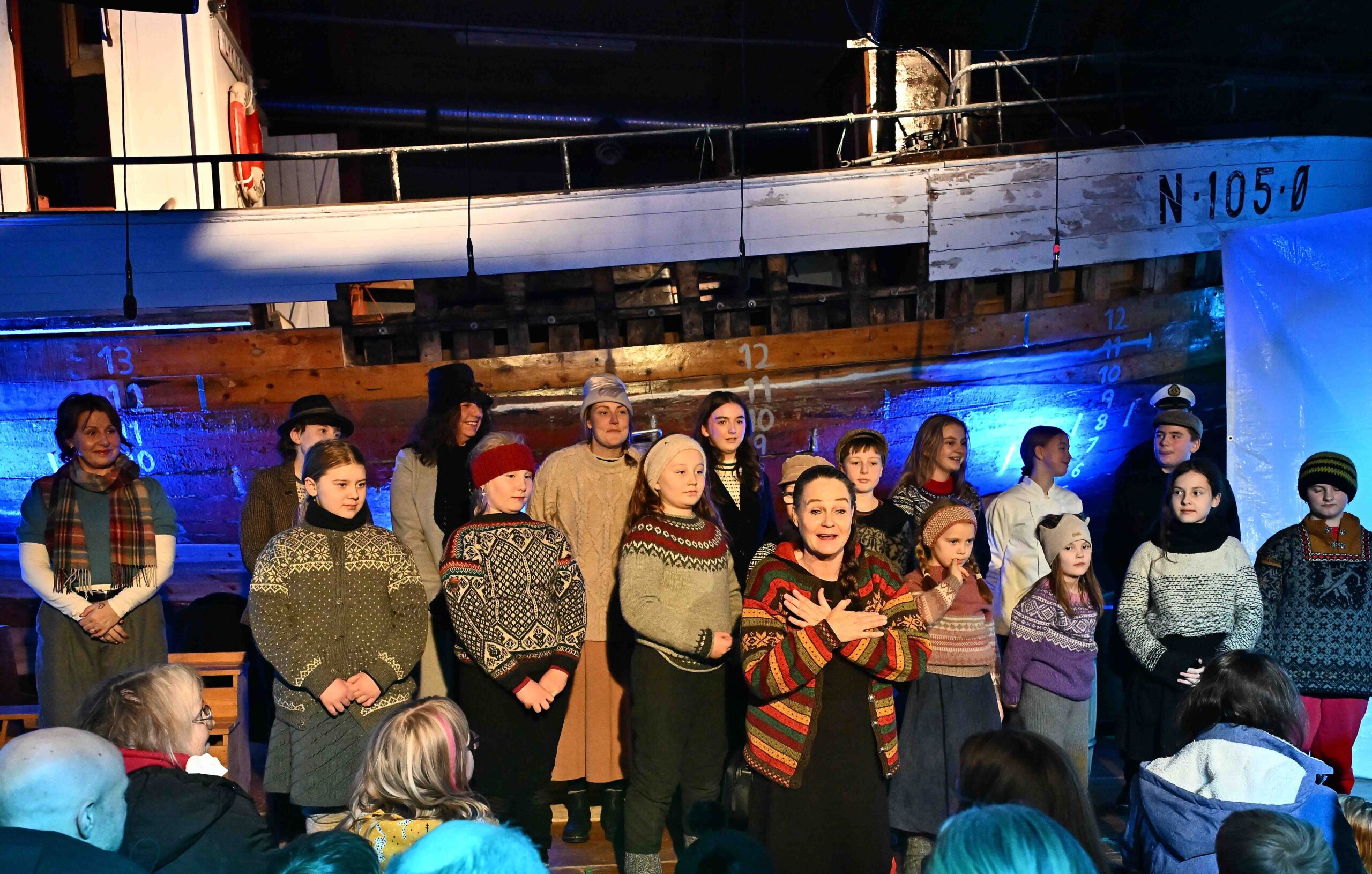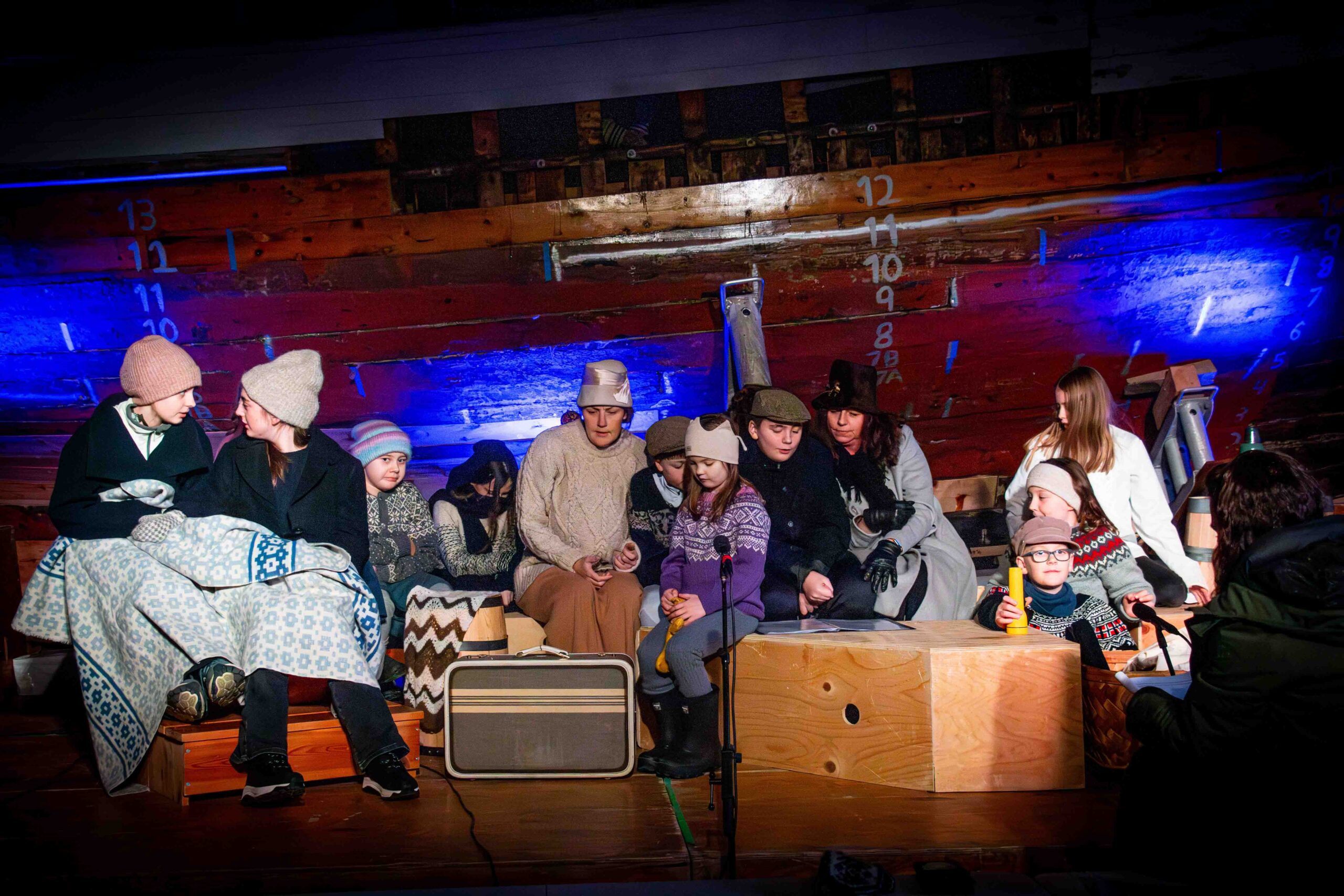 Kulturarv er både materielle ting, men også historie, musikk og muntlige fortellinger. Vårt ønske var å lage et møte mellom publikum, båt og låt for å levendegjøre ei spesiell historie og et spesielt kulturminne. Markeringa foregikk på Samhold Slip – et båtverksted i Sørvågen i Øksnes kommune. Her står Lykken på slip i påvente av restaurering. Det ble bygd opp ei scene foran båten, og deler av skuespillet foregikk om bord i Lykken. Skuespillerne kom hovedsakelig fra kulturskolen i Øksnes og UL Nybrott, men det var også frivillige som stilte opp utenom.